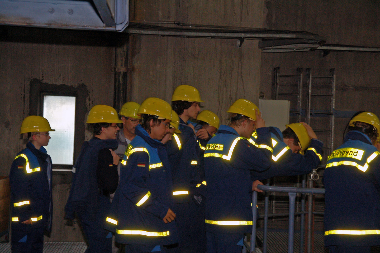 Blaue Uniformen, auf Hochglanz polierte Stiefel, strahlende Gesichter – das alles deutete darauf hin, dass an diesem Dienstag etwas Besonderes anstand. Und so war es dann auch: Nur sieben Minuten nach Dienstbeginn saßen alle 15 Junghelfer in den Fahrzeugen und konnten in Richtung Neckar aufbrechen, denn auf dem Plan stand, das Kraftwerk Marbach zu besichtigen.