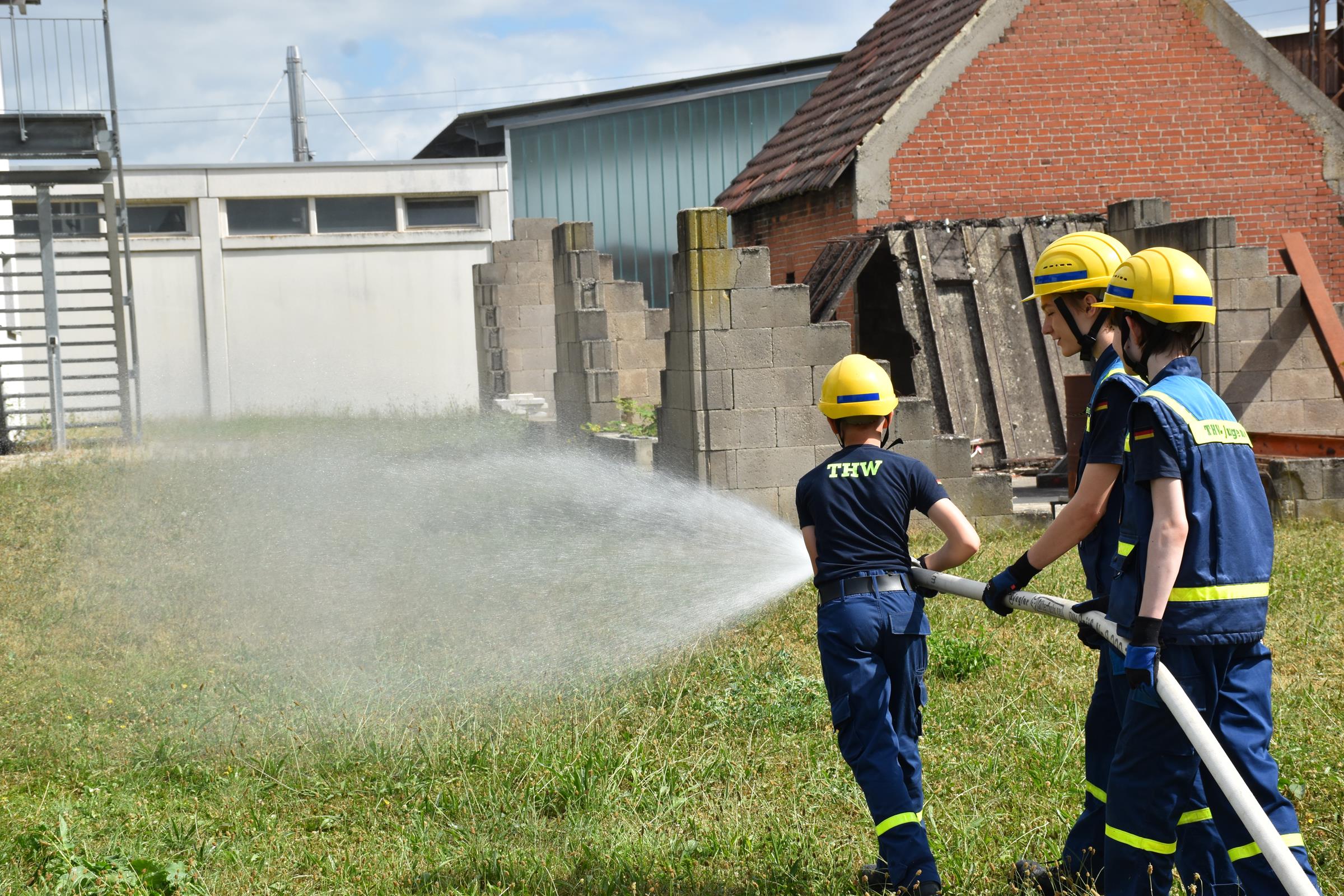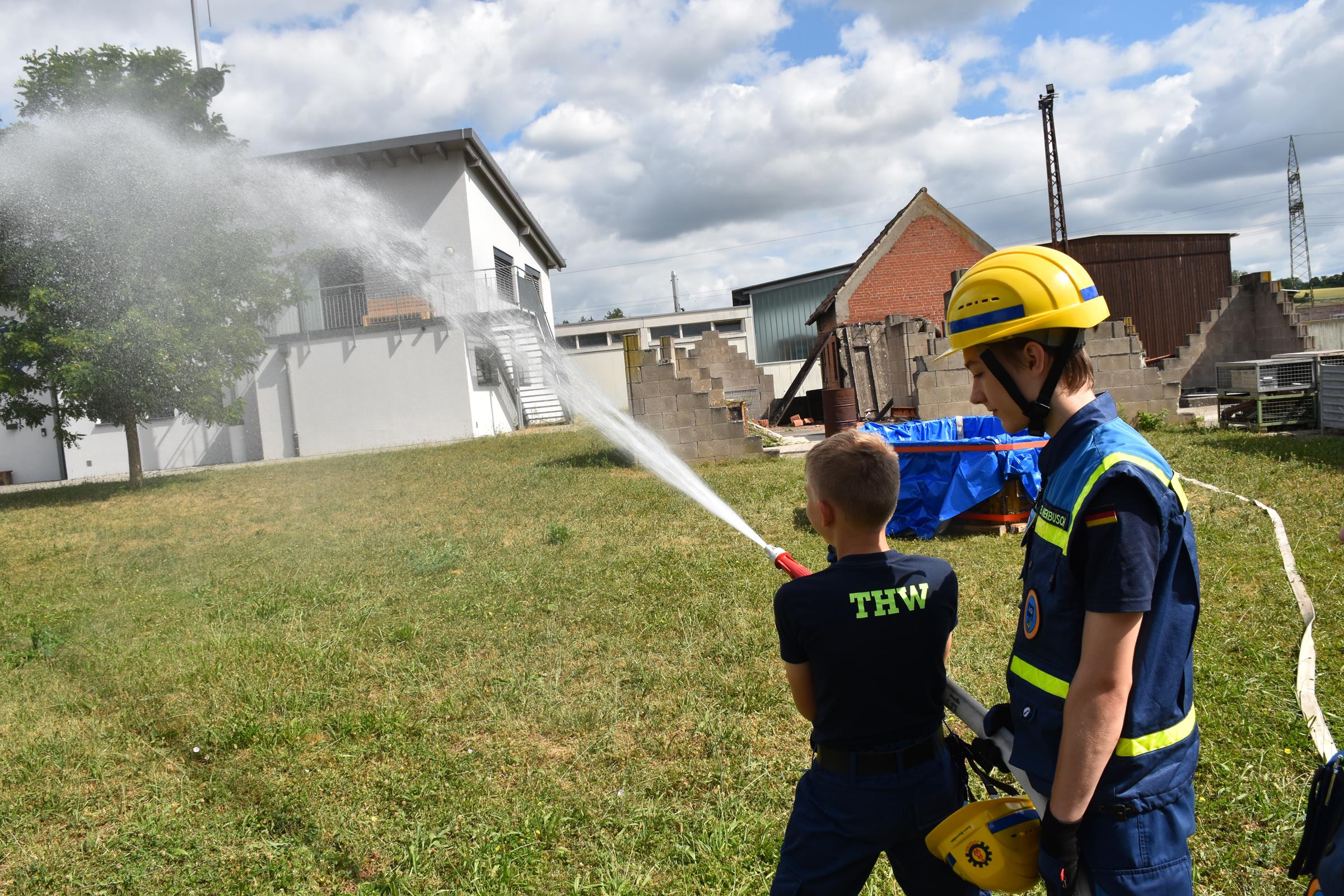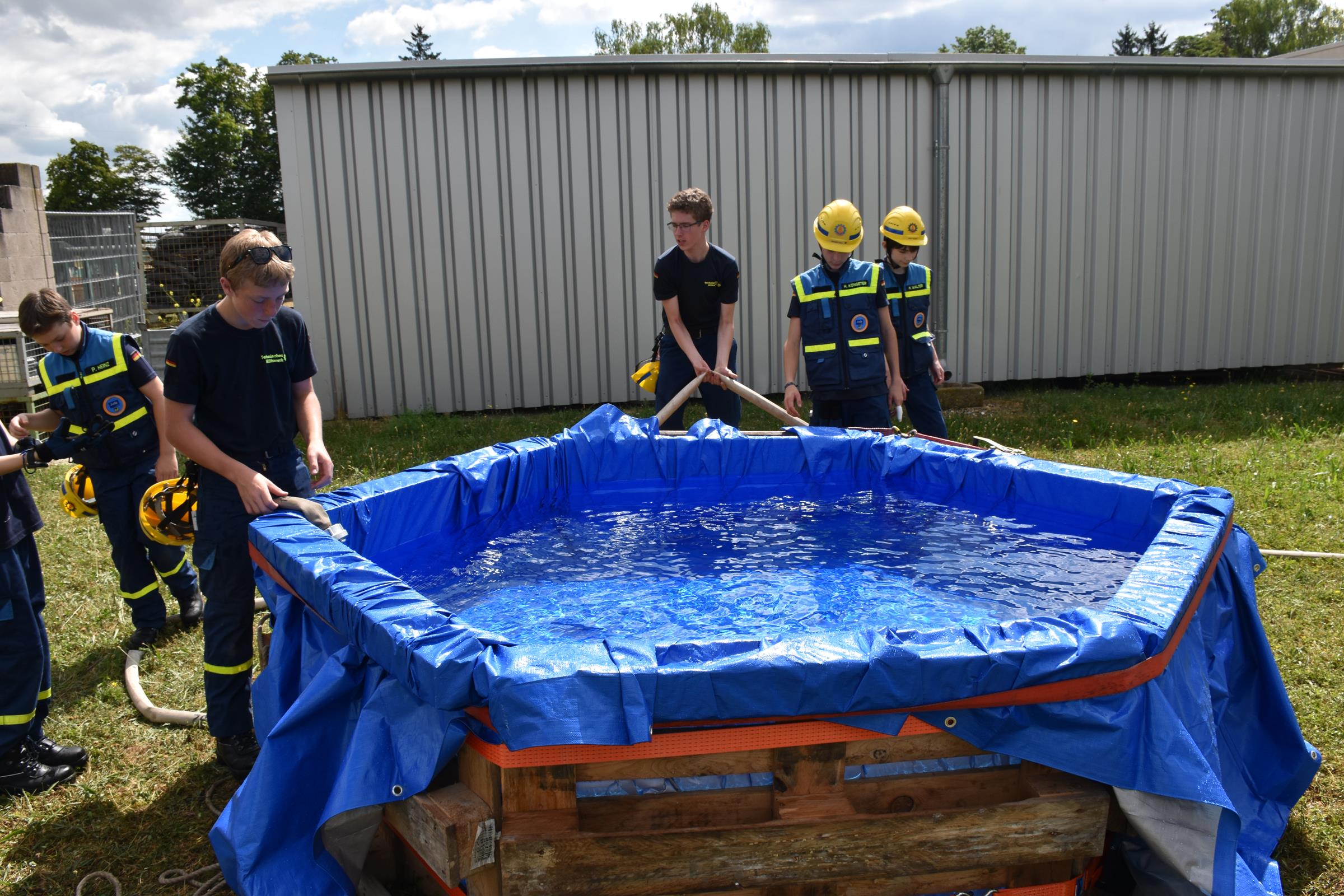 Also machte sich die Jugendgruppe bei strahlenden Sonnenschein daran einen Pool aus Paletten zu bauen um sich entsprechend abkühlen zu können. Dabei kam eine Wasserschlacht natürlich nicht zu kurz.