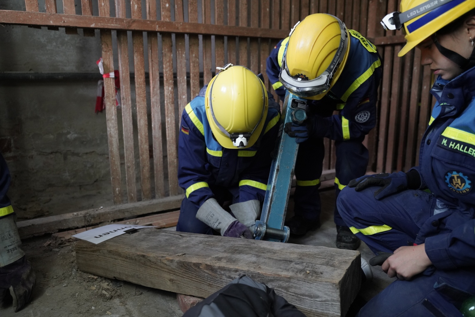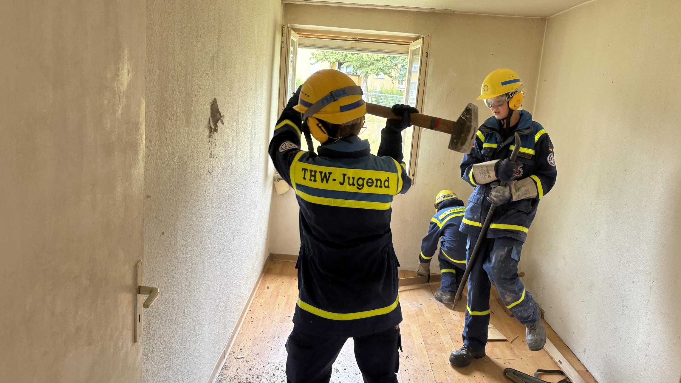 In fünf gemischten Trupps begannen die Jugendlichen vor Ort mit der Erkundung und verschafften sich auf verschiedenen Wegen Zugang zu den einzelnen Gebäudeteilen. Die Suche nach den vermissten Personen wurde durch die beschädigte Gebäudestruktur als auch Gefahrstoffe in der Umgebung erschwert.