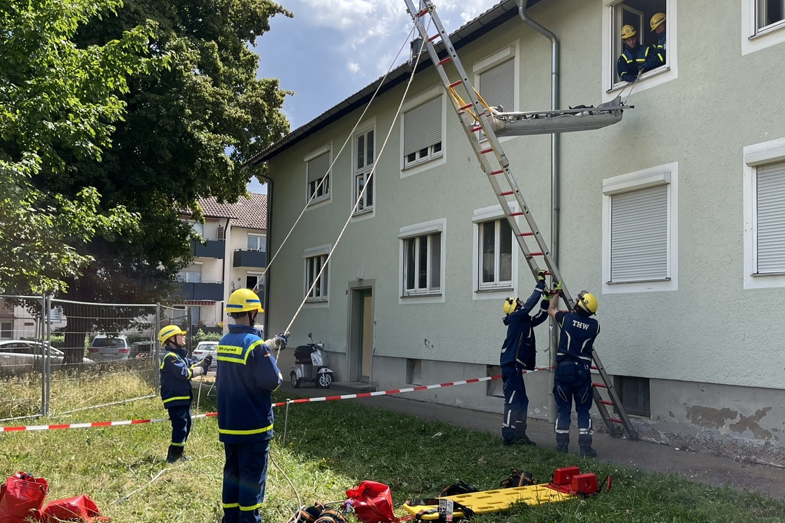 Am Samstag, den 12. Juli 2025, führten die THW-Jugendgruppen aus Ludwigsburg und Calw eine anspruchsvolle Einsatzübung mit dem Szenario einer Explosion in einem Mehrfamilienhaus durch bei dem Mehrere Personen vermisst wurden.